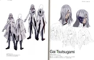 Gai reveals Shu to the "Funeral Parlor" and orders Ayase to train him if she valued her life. He is later seen walking into a room with Inori and it is revealed that he has to take her blood two to three times each month, for an unknown reason. After, Gai sets the first part of his plan into action to take the Leukocyte, but this backfires when it attacks the area they were in. It kills all of Gai's teammates and Kyo so Gai decides to change their plan. While taking Inori's blood, Gai questions himself on why he was doing all of this, saying it took all he had just to keep up the 'leader' act. He is over-heard by Shu, and they get involved in a fist fight. Shu punches Gai to the face, knocking his chain off. He tries to reach for it but can't because of his injury. Shu picks it up for him and tells him that he'll help and Gai calls him an idiot. They carry out the plan to destroy the Leukocyte by using Kido's Void, before they are interrupted by Daryl who wants revenge because Gai humiliated him. Gai defeats him quite easily even though Daryl was in his Endlave, which Shu is amazed about. Gai is revealed to have known that Shu had the "pen" that Segai gave him and uses it to let the Leukocyte target him. However, Shu shows up with a new Void which was given to him by the girl that resembles Inori but Gai refuses to tell Shu who the owner of the Void was. They succeed and Shu tells Gai that they were both accomplices and Shu helps Gai up. After some days Shibungi informs Gai that they are running out of supplies, although they had still some savings they have no route to transport new supplies, Gai apparently knows someone who will help them. The next night Gai and Shu disguise themselves as Butler and attend a party on cruise ship to make a deal with the Head of the Kuhouin group (also known as Arisa's grandfather). Accidentally, Shu runs into Arisa, in which he tries to run away from her. He tells Gai to take care of the rest and flees. Gai stops Arisa before she could chase after Shu, and he tells her that she is like his armadillo pet that he had when he was young, which makes Arisa furious. She tries to slap Gai but he stops her by holding her hand. After Gai makes his proposal to Arisa's grandfather, Shu tells Gai that Tsugumi informed him about a attack on the ship from the anti-bodies. When Shu asks him what they should do in order to save the passengers, Gai tells him to meet him at the upper deck. Gai takes Arisa there and tells that he is about to cast a spell on her, and tells her to close her eyes. When she opens them, Shu draws out her void and they together successful defend the ship. Gai mentions to Arisa that she is actually very shy despite the tough image she gives out.